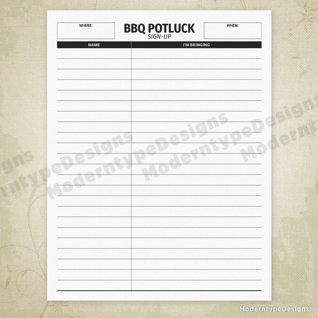 • PDF BBQ Potluck Sign-up Sheet Form - 8.5 x 11”