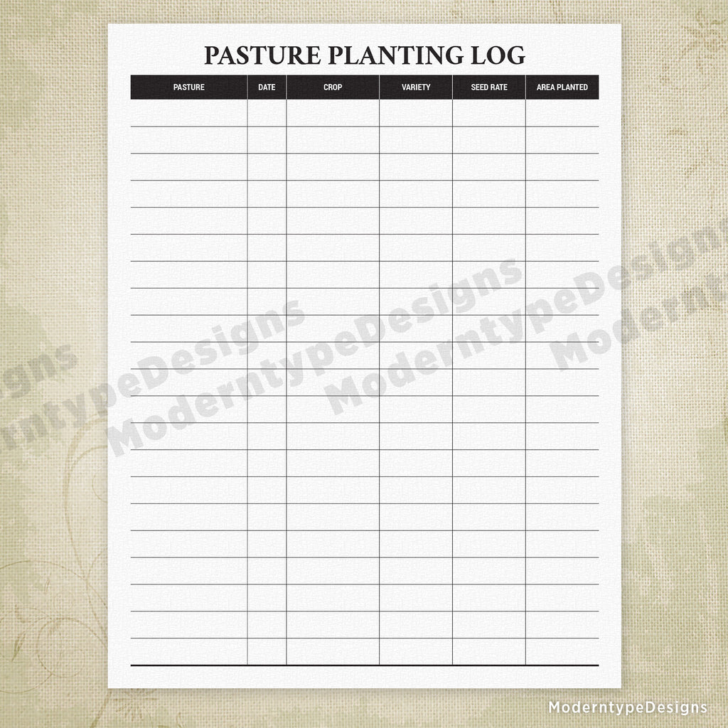 Keep precise records of your crop planting with the Pasture Planting Log Printable PDF. Designed to help you track where and when seeds are sown.