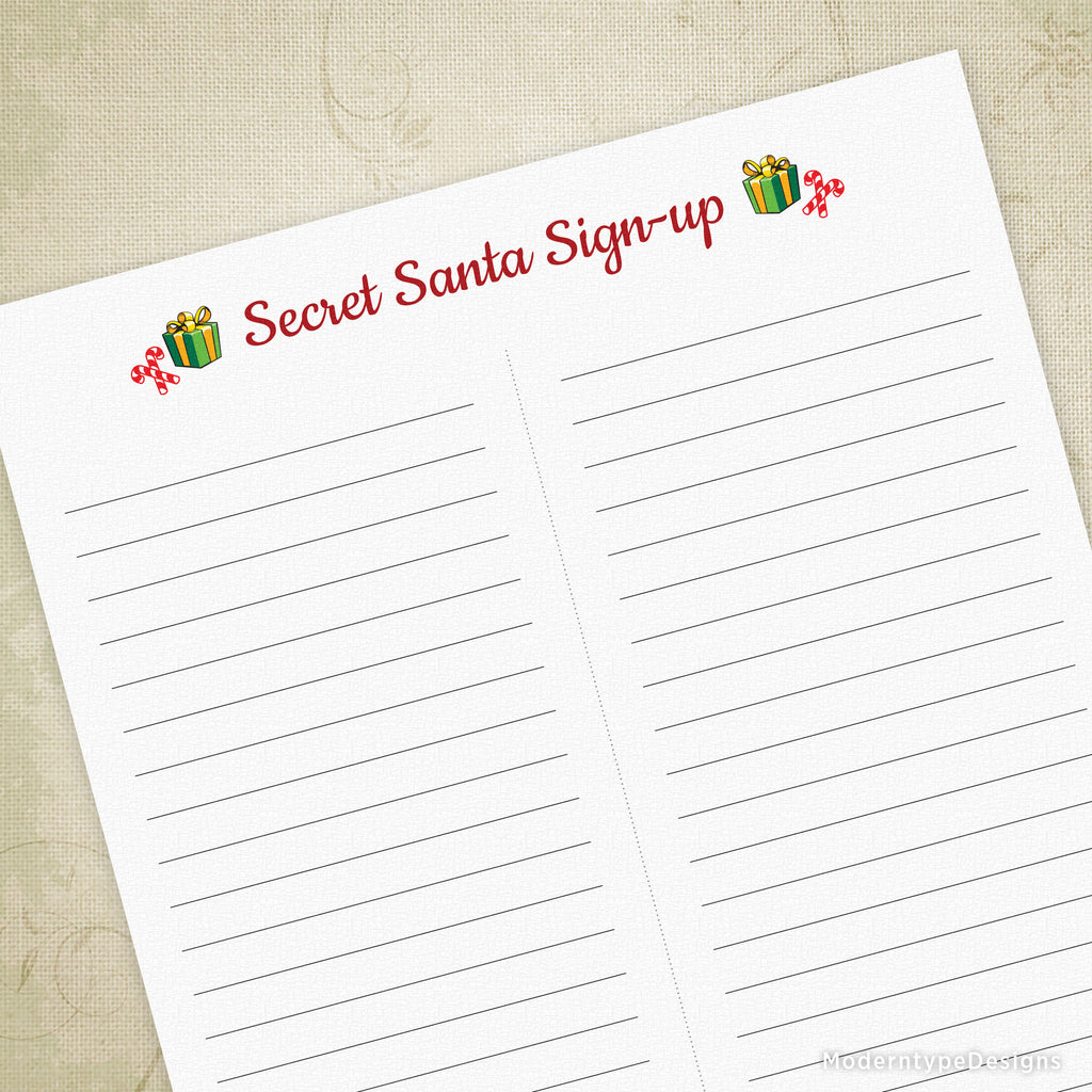 • PDF Secret Santa Sign-up Form - 8.5 x 11"